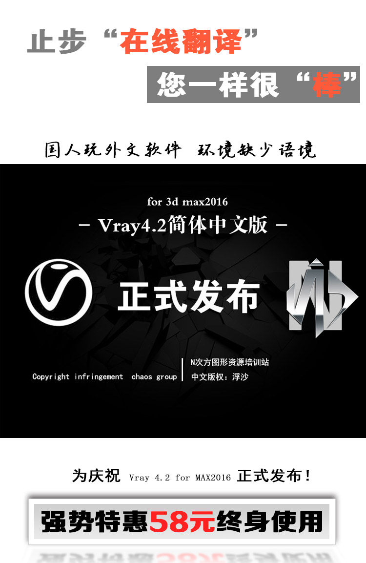 点击此处购买授权,如果无法点击请打开此链接:http://bbs.chicg.com/hack.php?H_name=authcode&window=buy 授权类型请选择 Vray for Max 点击此处进入下载地址,如果无法点击请打开此链接:http://bbs.chicg.com/d/category/4/11 Vray安装器:http://bbs.chicg.com/read.php?tid=209 下载后,请将购买的授权码和机器码一起发给客服进行审核,或者直接咨询客服购买并远程安装。